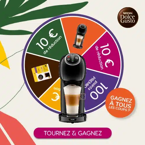Tournez la roue et tentez de gagner une machine a café Genio S Dolce Gusto ou l’un des autres lots mis en jeu