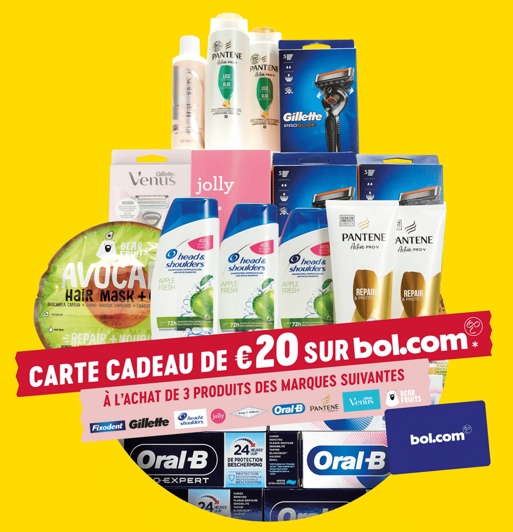 Achetez 3 produits au choix parmi les marques participantes chez Delhaize et recevez un bon de 20€ à dépenser sur le site BOL