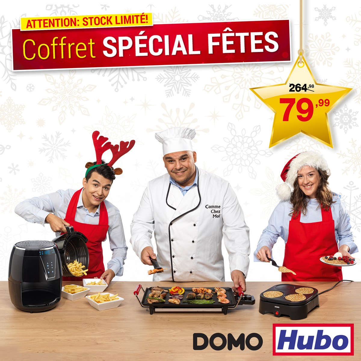 Vous recevrez ainsi une friteuse Airfryer, une plancha Teppanyaki ainsi qu'une crêpière Domo