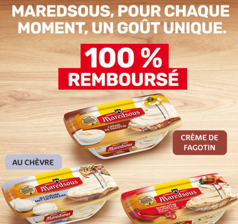 Profitez en ce moment d’un paquet de fromage à tartiner Maredesous gratuit Ils sont en ce moment 100% remboursés
