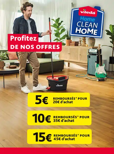 Achetez un produit Vileda dans l’un des magasins participants et bénéficiez d’un cashback allant de 5 à 15€