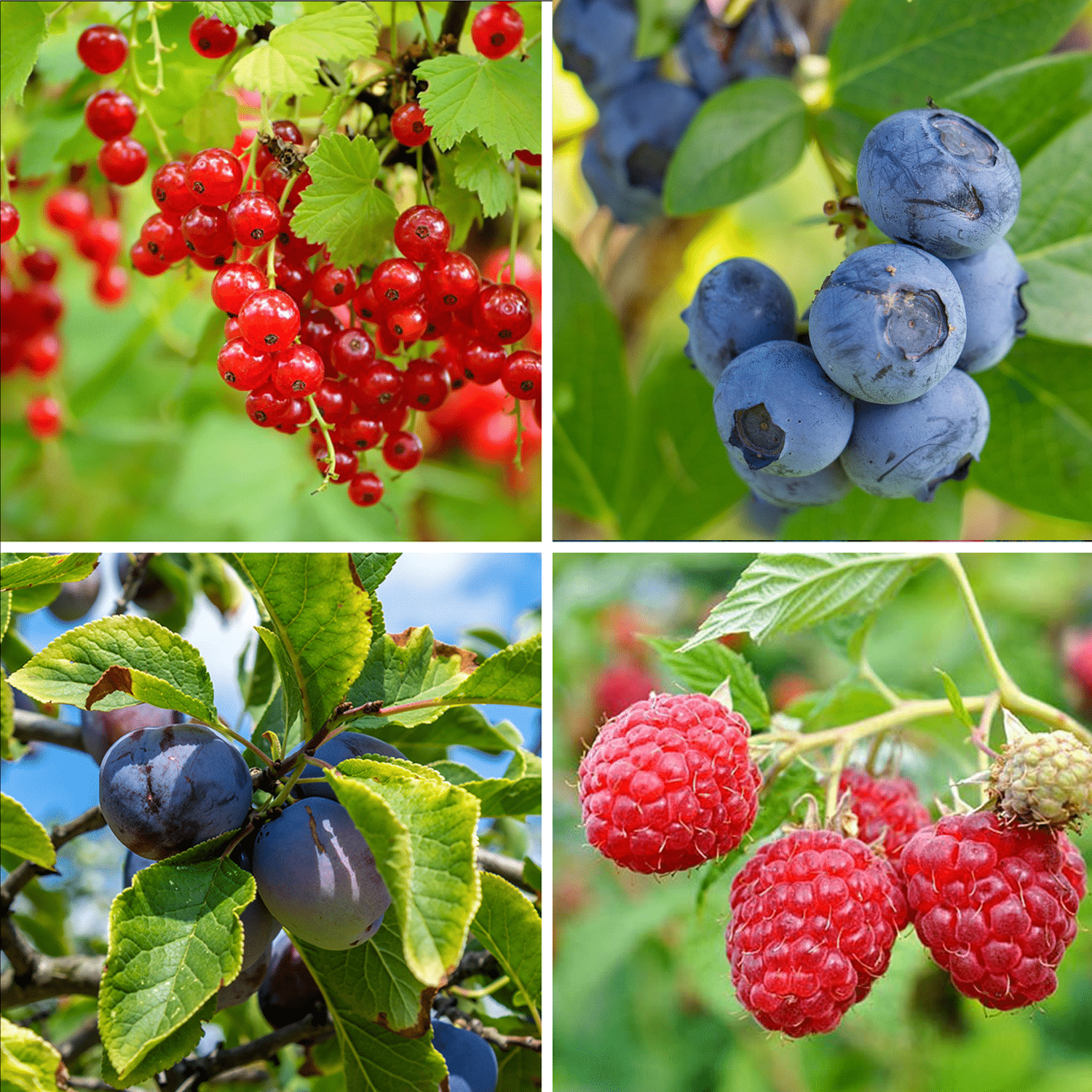 Groseilliers,  Framboisiers, Pommiers, Erable, Noisetier,..